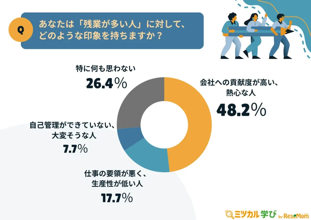 【「残業が多い人=貢献度が高い・熱心」と思う人48.2%】否定的な見方は約4分の1
