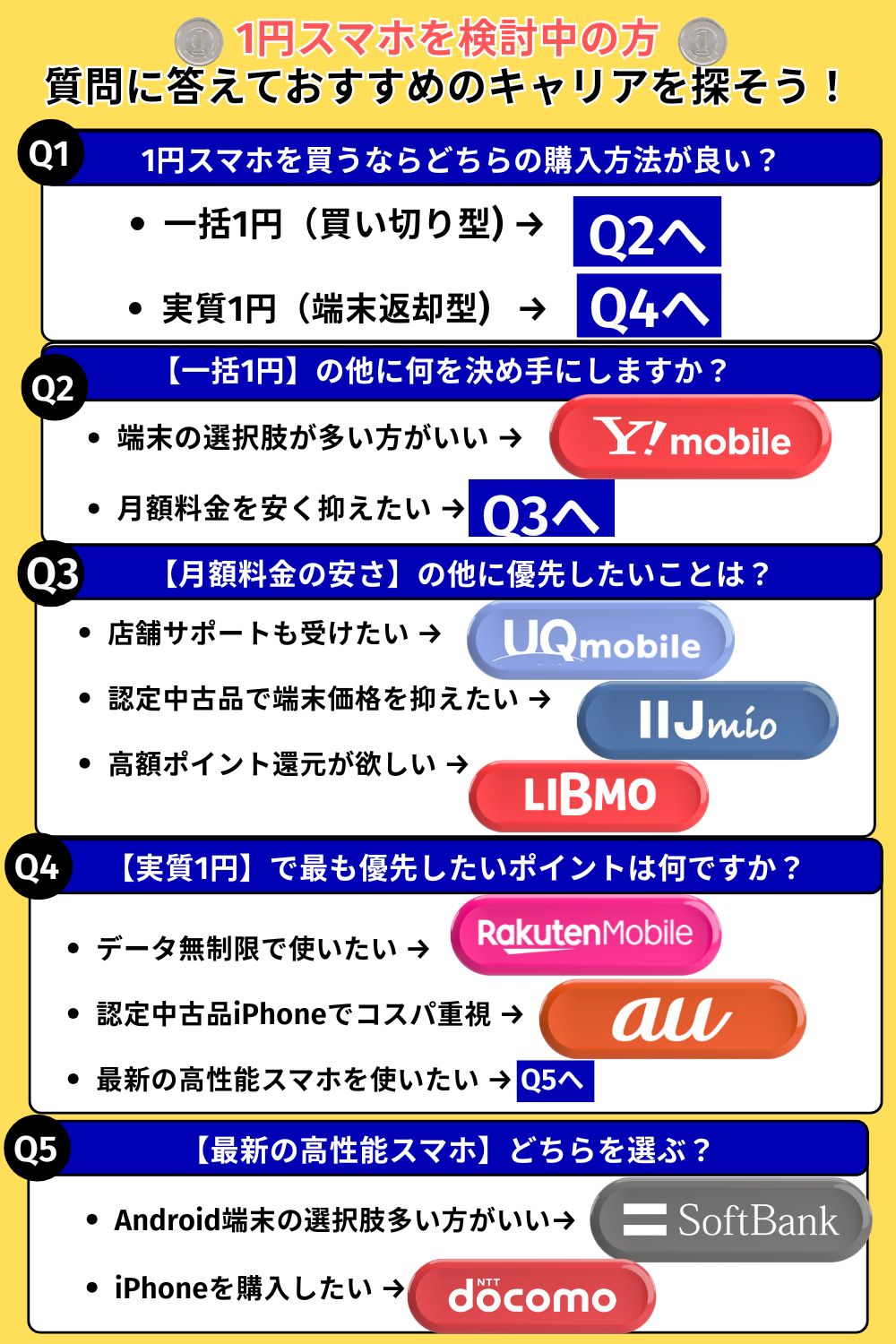 1円スマホ含む、激安端末の取り扱いがあるのは、ズバリ下記キャリアです。