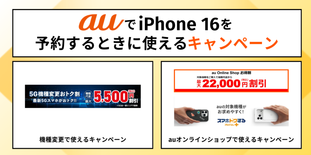 - auでiPhone 16を予約する際はキャンペーンを利用するとお得に購入できる