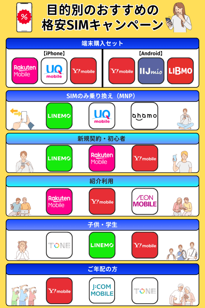 目的別におすすめの格安SIMキャンペーンを紹介します。