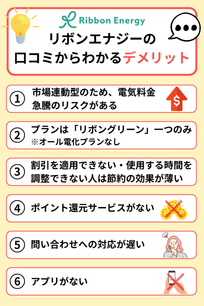 一方で、専用アプリがないことや、市場連動型の料金体系、問い合わせ対応の遅さをデメリットとして挙げる声も寄せられています。