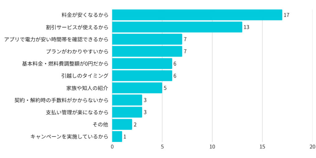 アンケートの結果、利用者の85%が「電気代が安くなった」と回答しており、特に基本料金が0円で料金体系がシンプルな点に魅力を感じている人が多いことがわかりました。