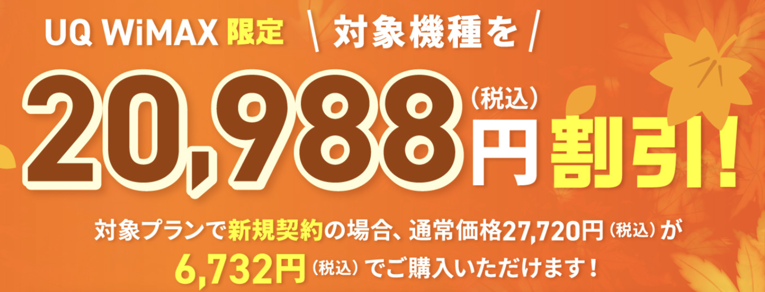 例えば、UQ WiMAXのキャンペーンは「購入段階での割引」です。