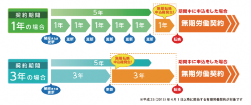 そして、実際に無期雇用に切り替わるのは、申し出た時の有期労働契約が終了する日の翌日からです。