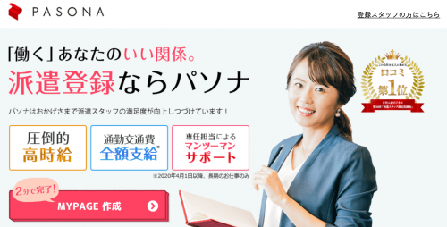 『パソナ』は、高時給案件の豊富さに強みのある派遣派遣会社です。