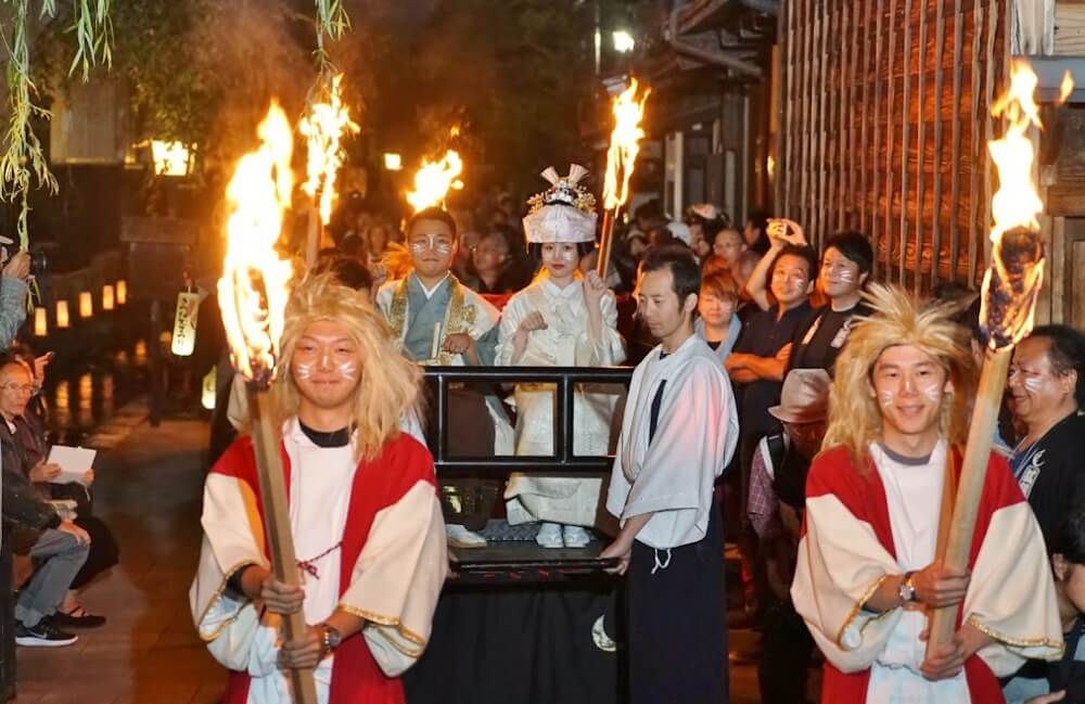 有名な古川祭や三寺まいりのほかにも、9月に行われる「きつね火まつり」も飛騨市の奥深い文化が。松明の灯りを揺らしながら、総勢50名のきつねの嫁入り行列が町中を練り歩く