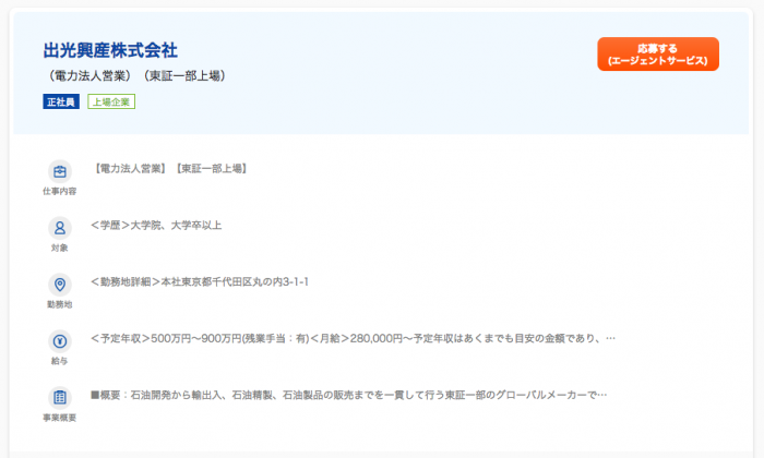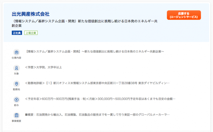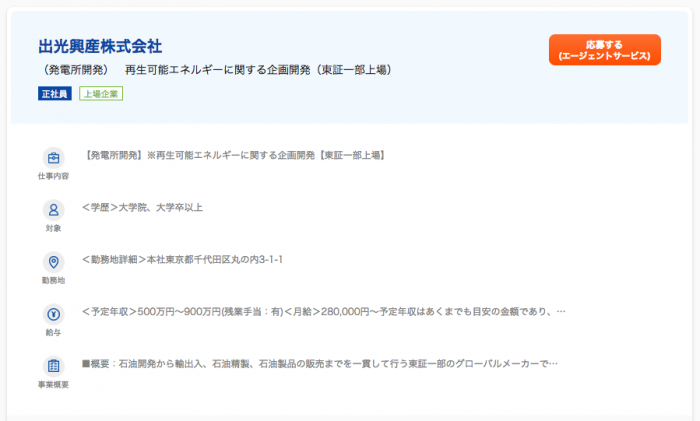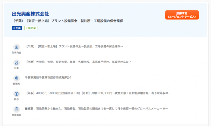 - 出光興産以外の求人も提案できる力と求人データベースがあるか