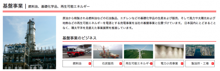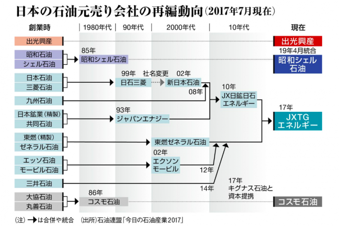 - 石油元売りの業界第2位で、昭和シェル石油(業界第4位)と経営統合予定(2019年12月)