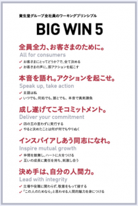BIG WIN 5とは、中長期戦略である「VISION 2020」の実現に向けて策定された、全社員の行動指針です。