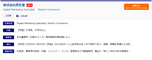 ここから、資生堂の求人情報をご紹介します。大手転職エージェントである『doda』を使って求人を調べると、以下の特徴がわかりました。