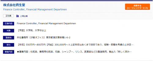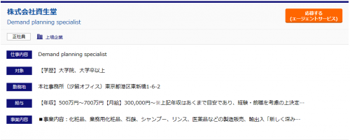 資生堂では、現時点で企業採用HP上での中途採用募集は行っていないので、参考として新卒採用での採用職種を紹介します。