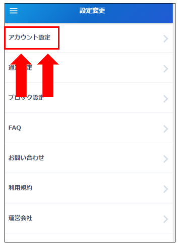 各種設定ページを開けましたら、「アカウント設定」をクリックしてください。