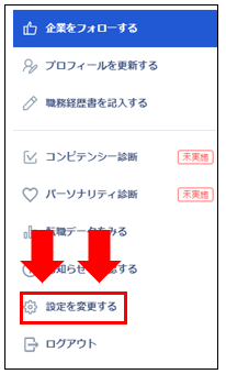 (1)ログインをして設定変更欄をクリック