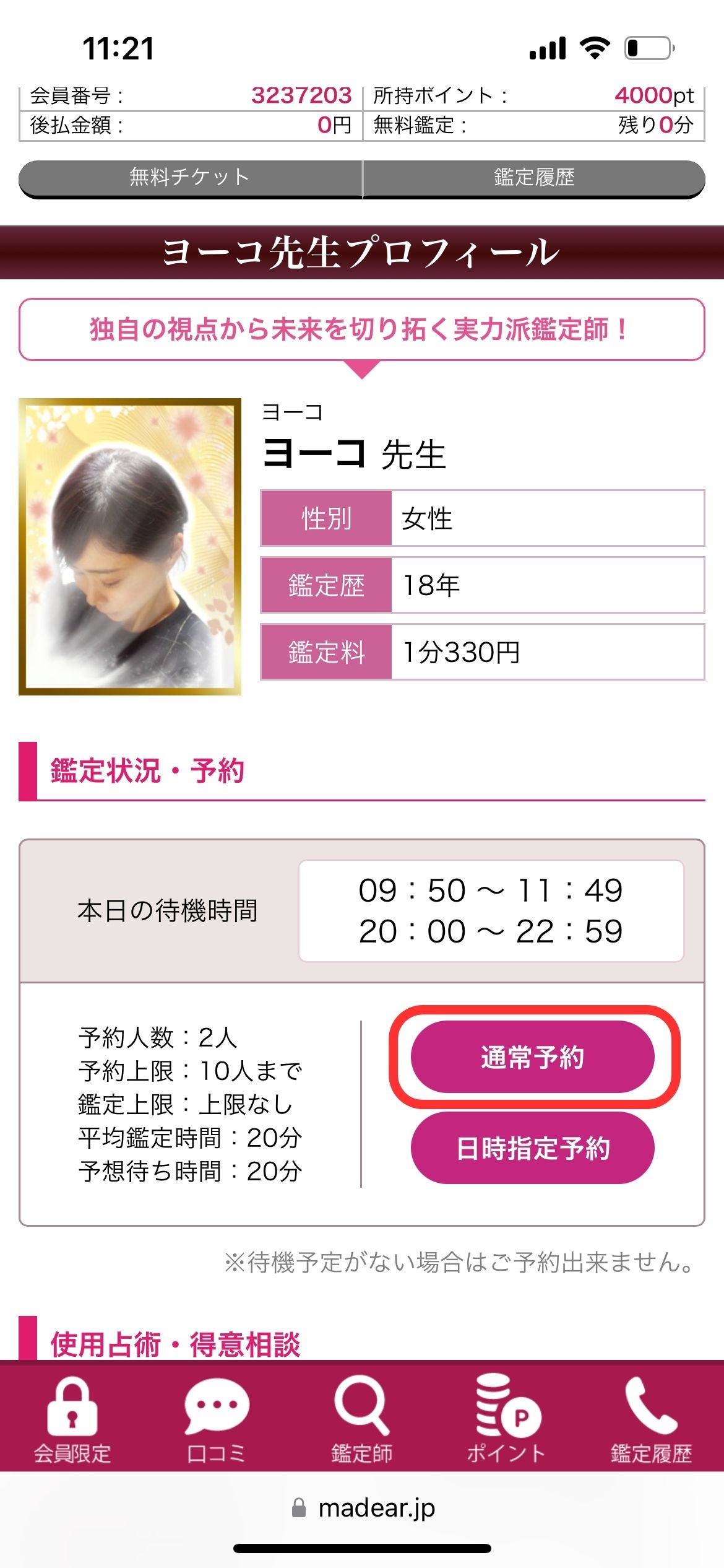 ユーザーのアカウントから希望の占い師のスケジュールを確認し、予約を入れることで確実に鑑定を受けることができます。