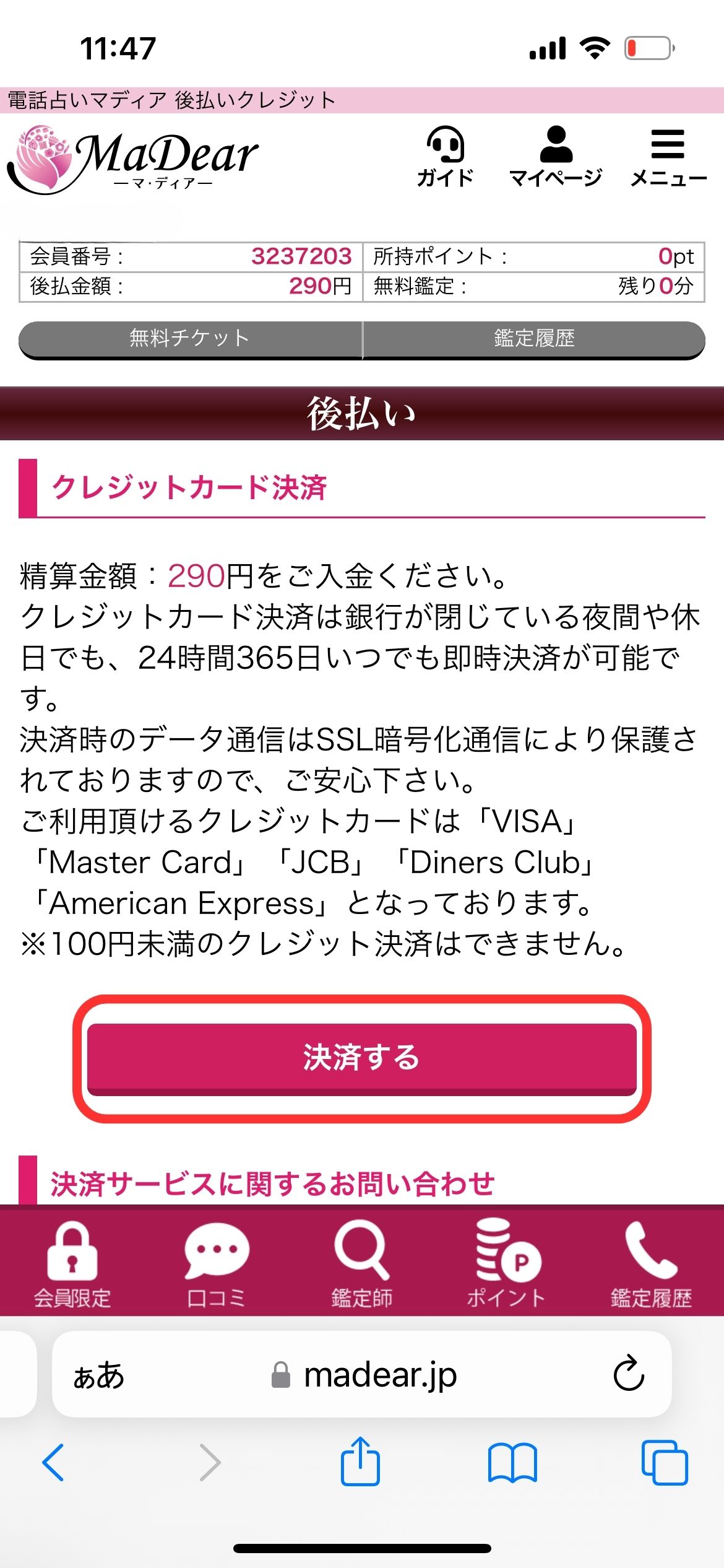 電話占いマディアは、「先払い」と「後払い」から支払いのタイミングをえらぶことができます。