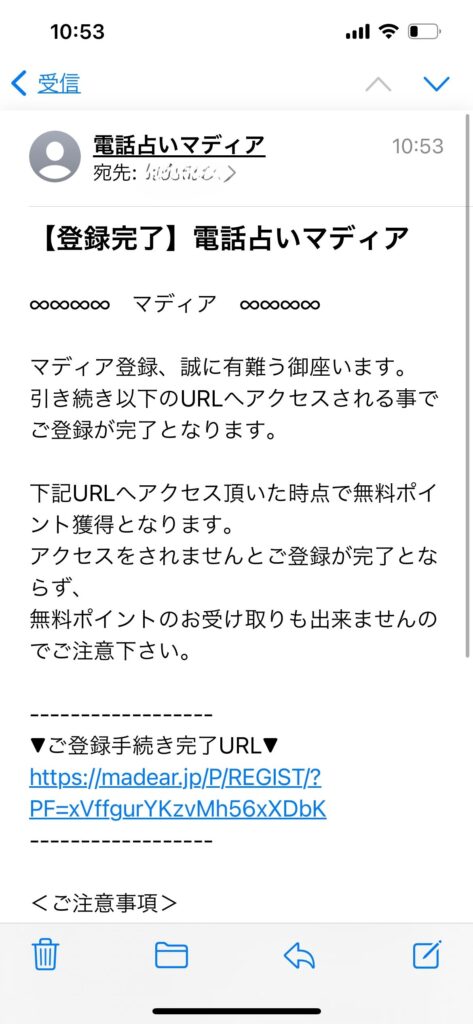![]() ![]() | ⑤登録完了のメールが届くので、手続き完了URLを押す |
