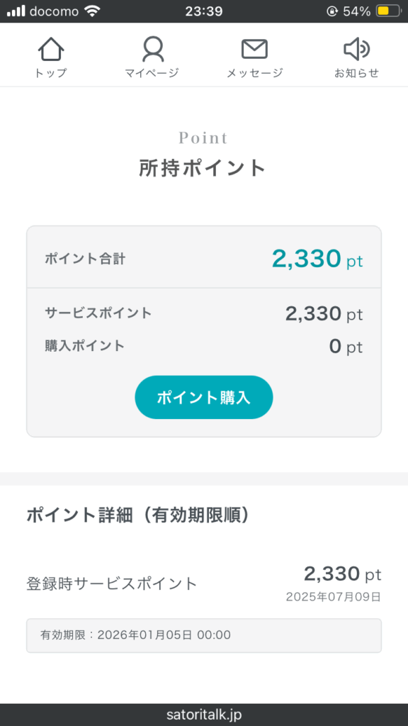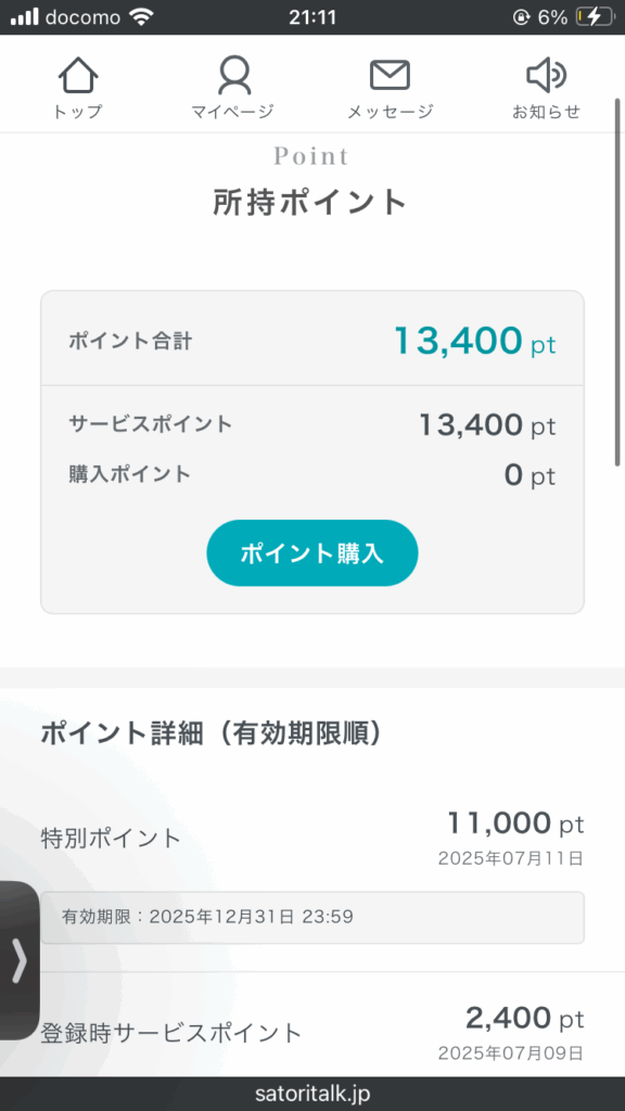 電話占いSATORIのアマモ先生に相談しています。相談者は初めての利用でポイントを利用しているため、鑑定料金が割引されています。