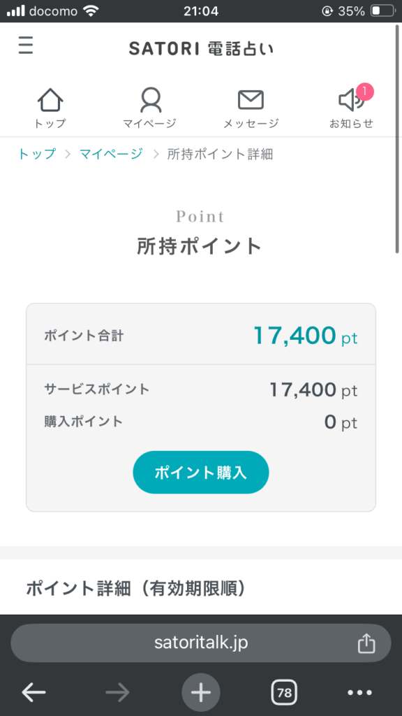電話占いSATORIのヘレン先生に相談しています。相談者は初めての利用でポイントを使用しているため、鑑定料金が割引されています。