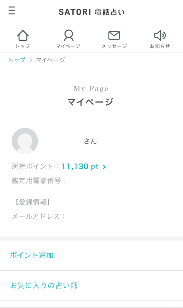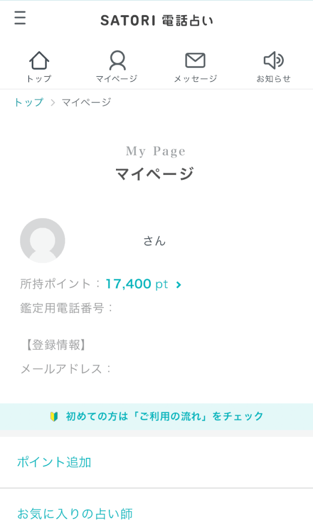 電話占いSATORIの友希先生に相談しています。相談者は初めての利用だったため、ポイントを利用して鑑定料金が割引されています。