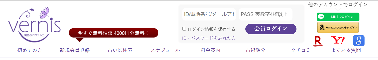 千里眼の電話占いには「電話占いヴェルニ」の会員登録が必要です。