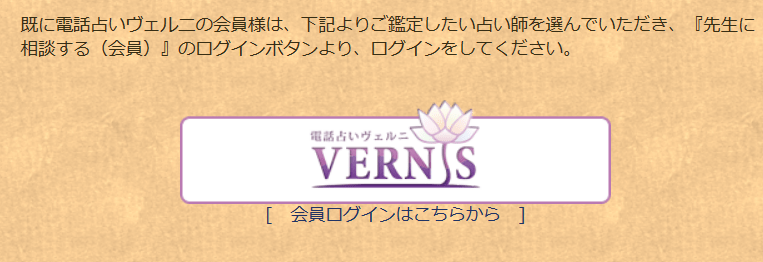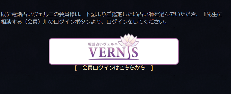 ![]() ![]() | ②電話占いヴェルニの「会員ログインはこちらから」をタップ |