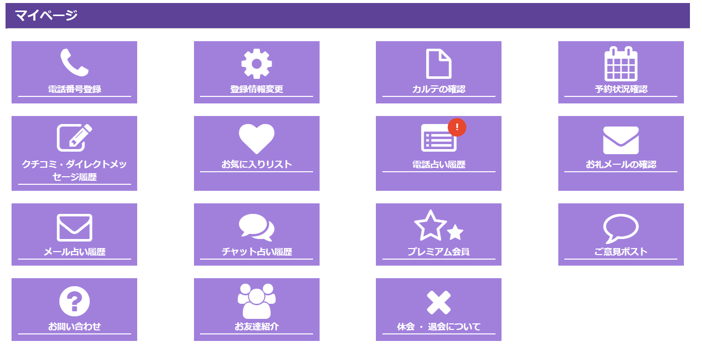 ![]() ![]() | ①電話占いヴェルニ公式サイトトップページの「マイページ」をタップ |