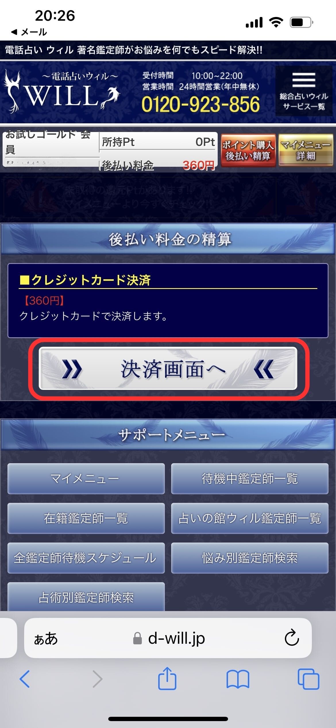![]() ![]() | ⑪【鑑定終了】後払い料金を確認する |
