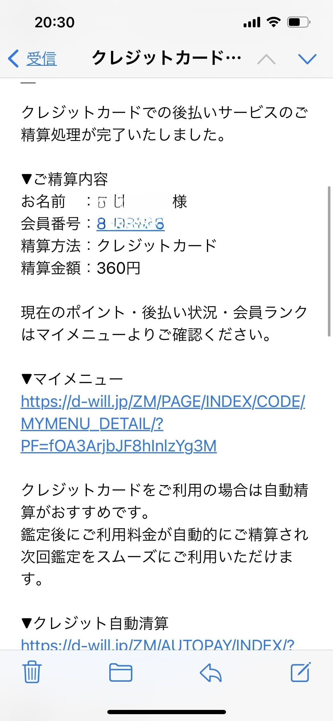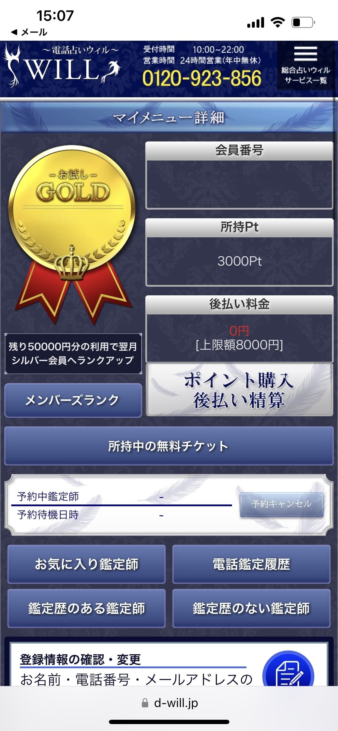 今回の鑑定は約8分で3,360円かかり、無料ポイント3,000円分を利用して実質負担は360円でした。
