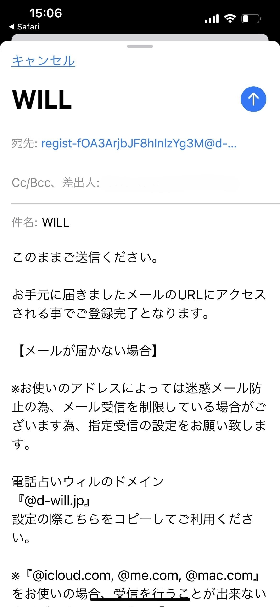 ![]() ![]() | ④仮登録用の空メールを送信する |