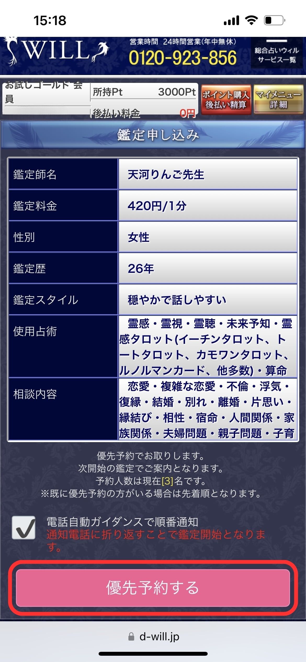 電話占いウィルの使い方