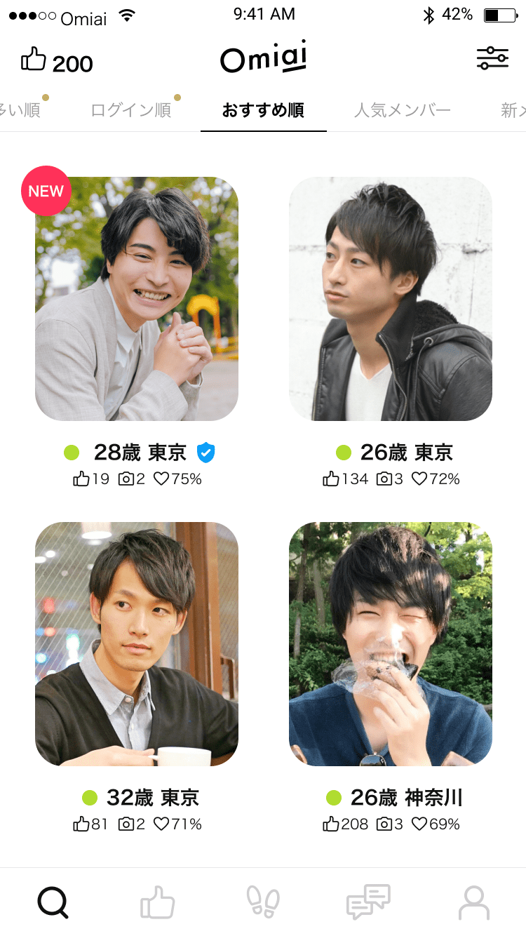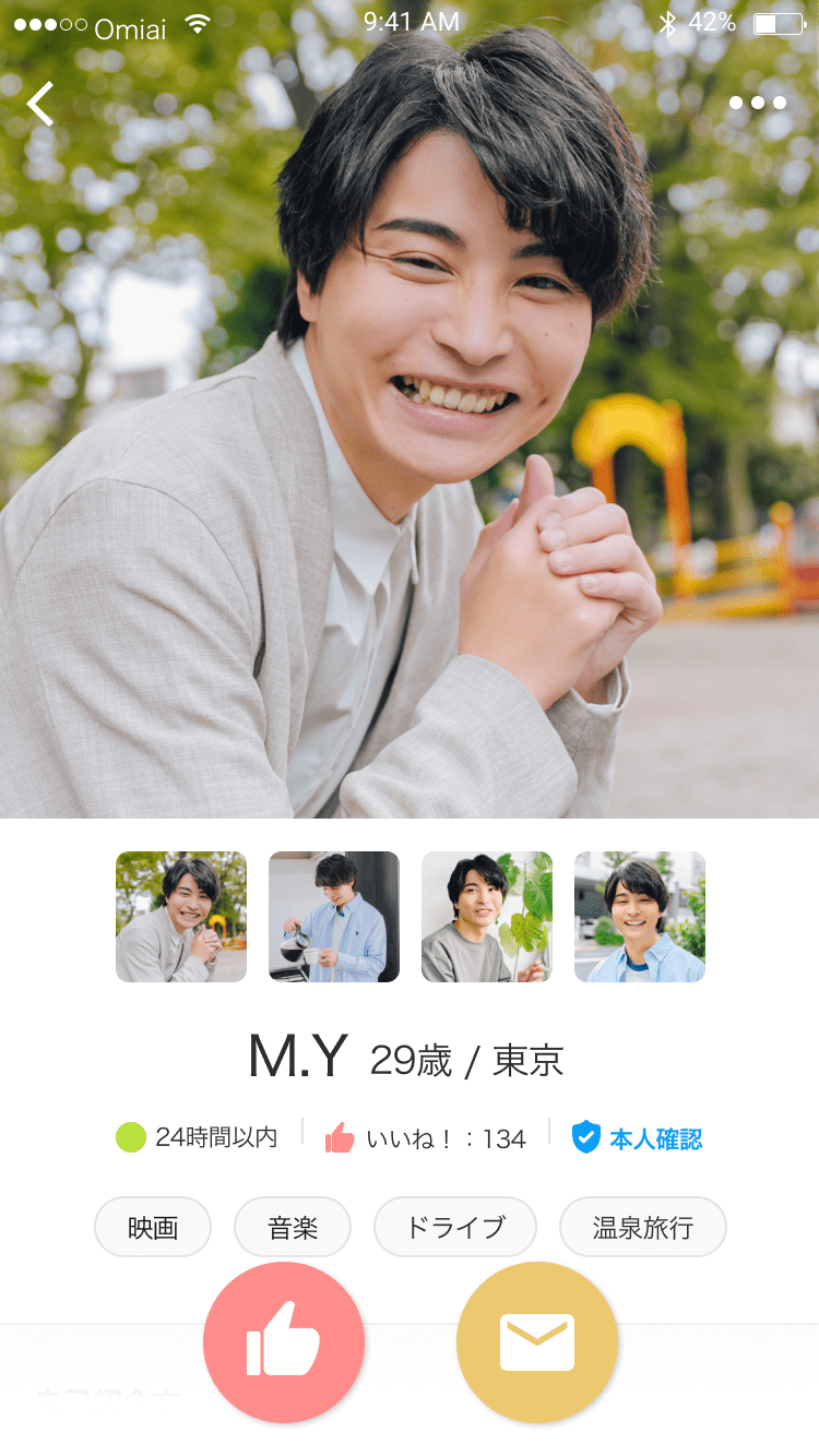 この手のアプリは検索が使いにくい事が多いですが、Omiaiについては、検索が使いやすくて気に入っています。特に身長とか出身地とか、細かい所まで検索できるのは大きな利点だと思います。まだ使い始めて間もないので、これから出会えるのかどうかは分かりませんが、今のところ登録して良かったと思ってます。