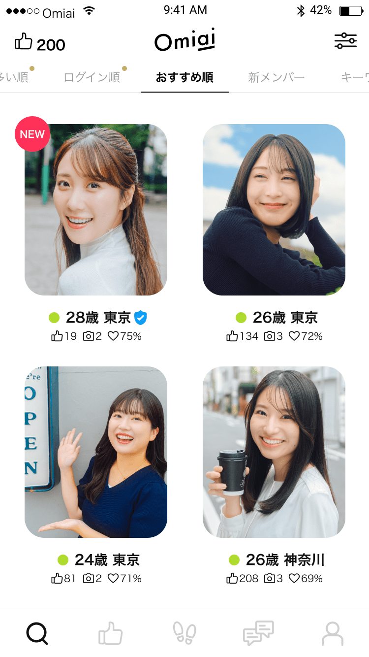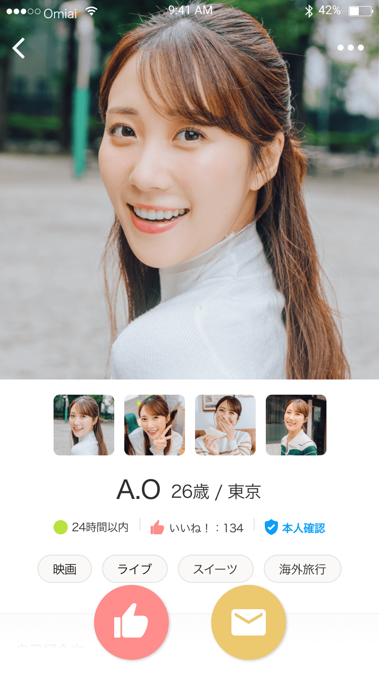 もちろん、年齢差はあるので、いいねを送っても無視されることもあり、へこんだりもしますが、30代の男が20代の女の子と知り合うなんて、なかなかできないので、その点でOmiaiは貴重ですね。