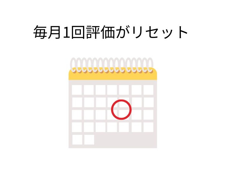 毎月中旬頃に、前月までの実績をもとに集計・評価がおこなわれる仕組みです。