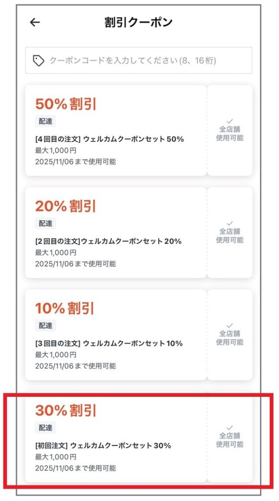 初回30%割引クーポンを使って