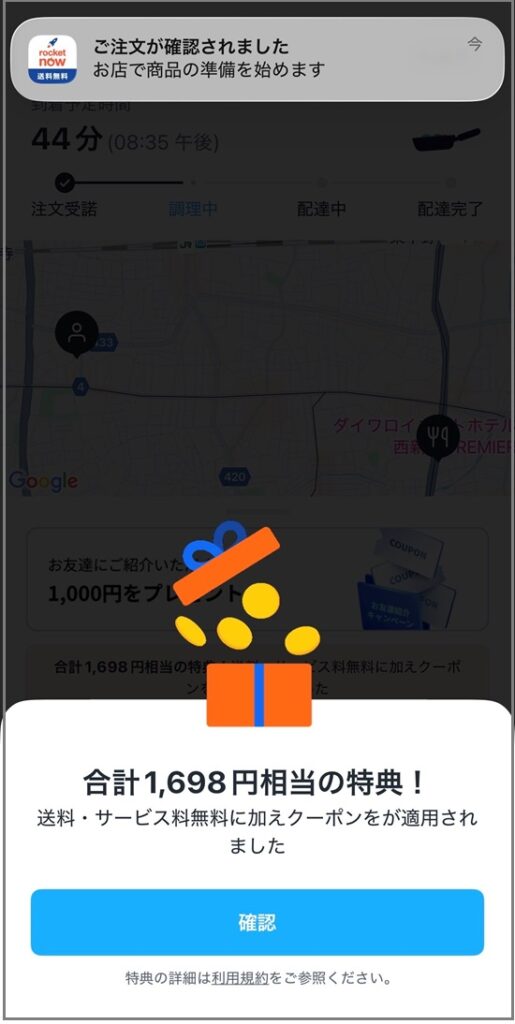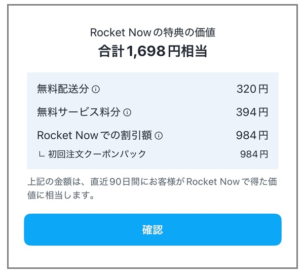 ロケットナウの初回注文(1回目)の特典は