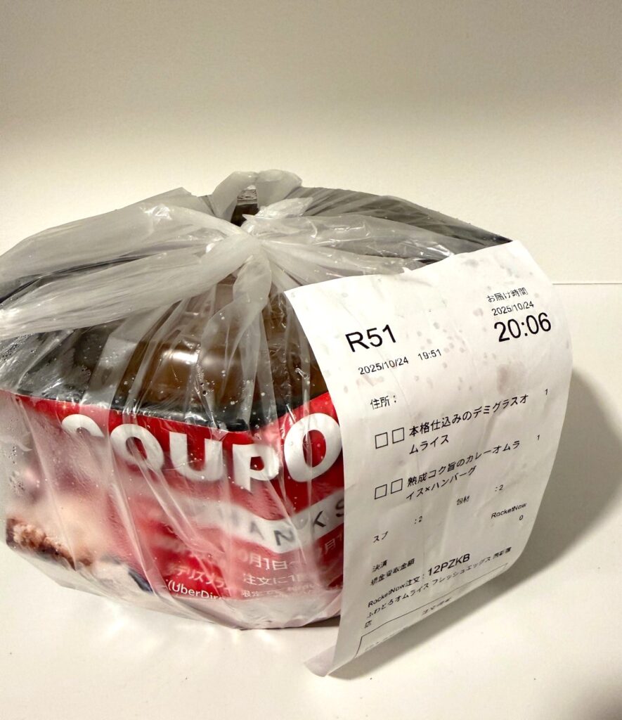 初めてのロケットナウ。フードデリバリー自体あまり利用しないのでちょっとドキドキでしたが、ぶじおいしい料理が届いてよかったです!