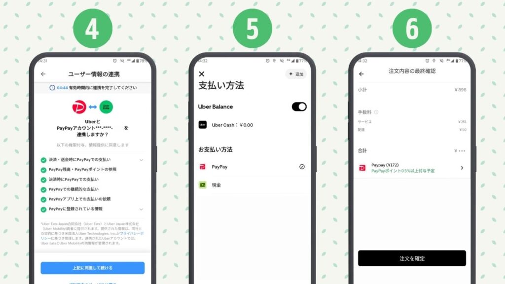 普段利用しているPayPayアカウントが無い場合は登録の手間がありイマイチなものの、PayPayユーザーであればUber Eats もPayPay決済がおすすめできます。