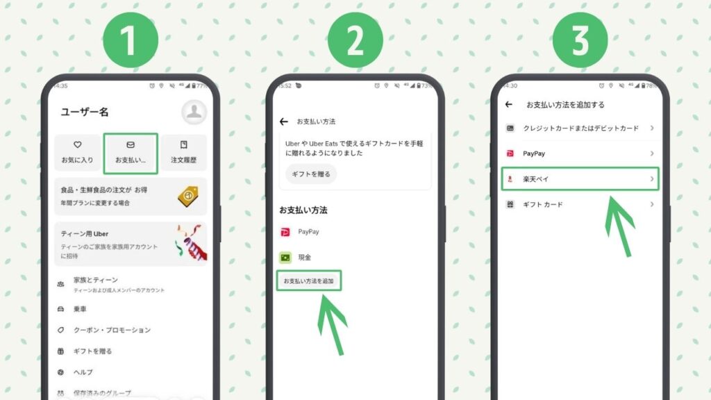 Uber Eats への楽天ペイの登録方法