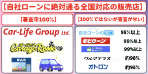 こちらの記事では比較的、審査が甘いカーリース会社をご紹介しておりますが、それよりも圧倒的に審査が甘いのは自社ローンを行なっている販売店に申し込むことです。