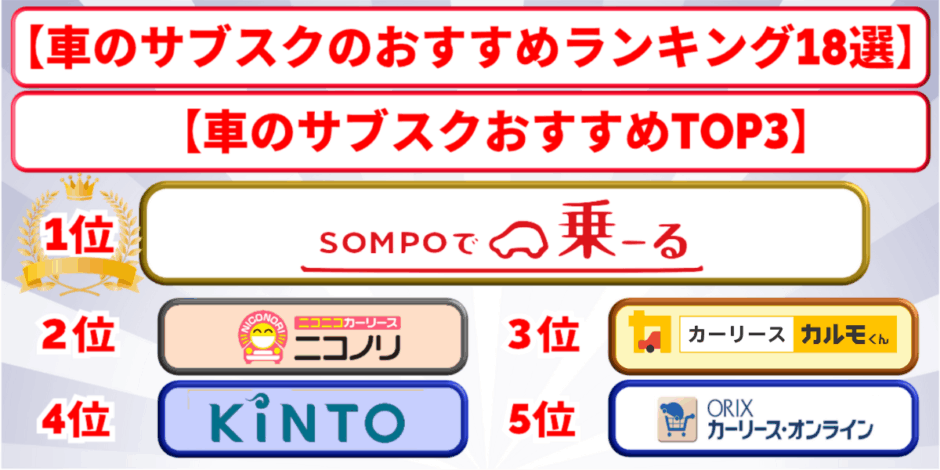 車のサブスクおすすめランキング18選!料金や評判&口コミで徹底比較!