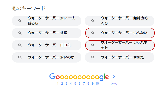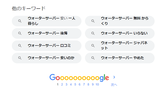 グーグル検索で「ウォーターサーバー 安い」と検索します。