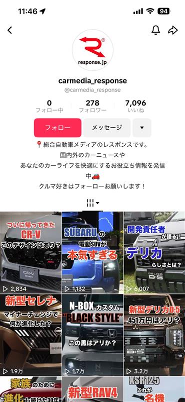 自動車ニュースメディア「レスポンス」、公式TikTokをスタート