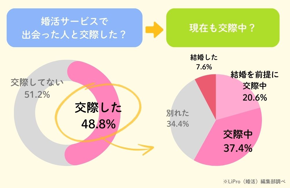 ・婚活サービスで出会った相手と交際できたのは48.8%