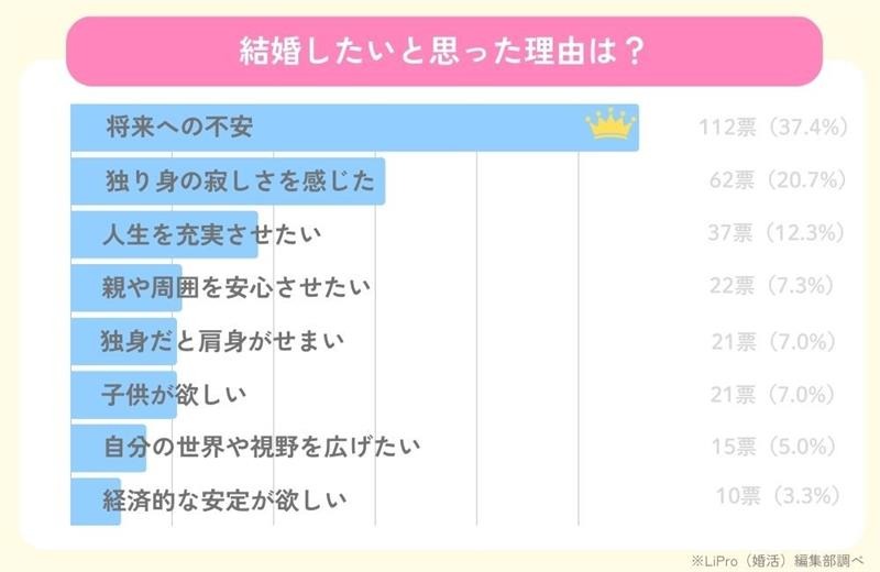 ・結婚したいと思った理由は「将来への不安」が最多