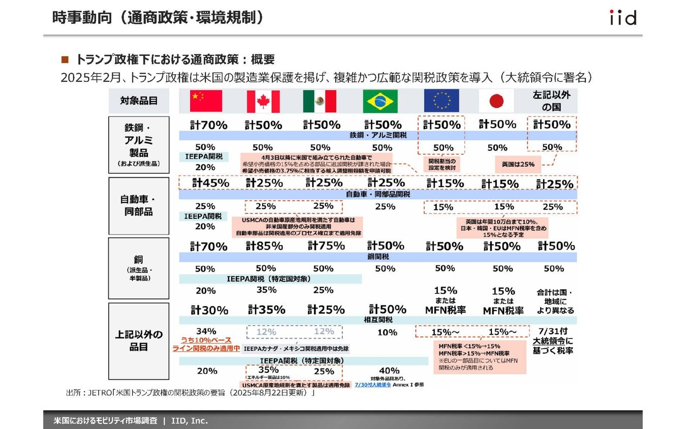 自動車産業の各分野を整理・分析した調査レポートを提供。「小米(シャオミ)の自動車戦略」「ファーウェイ 自動車業界における役割と戦略的影響力」「米国におけるモビリティ市場調査~主要動向・プレイヤーおよびトランプ政権下における通商政策・環境規制~」「インド・モビリティの市場動向」「自動車の知能化・SDV化動向」「中国・新興EVメーカー市場調査2026」など、インドや中国関連のレポートが人気です。